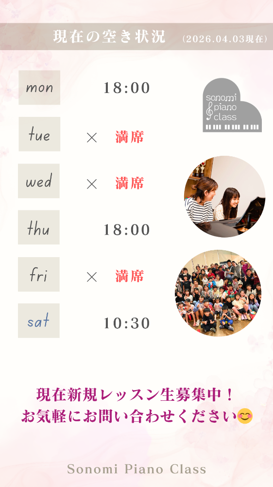 | 使用楽器・教材 | YAMAHA グランドピアノ1台 |